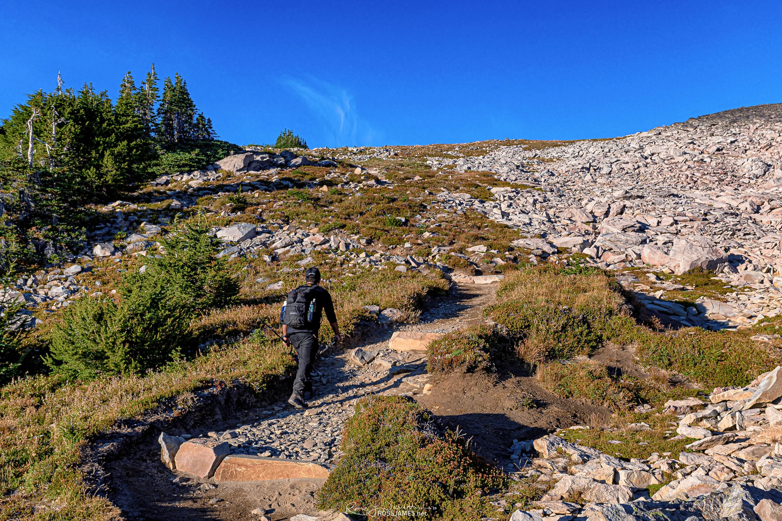 At 16 miles with 3500 feet elevation gain, this hike fits the definition of a ‘Hard Day Hike’. Jibin and I were out 9 hours from car to destination back to car. That’s including several mini photo shoots along the way. We literally kicked this mountain up and down! We both were very close to 50,000 steps on our smartwatches, and that was with 20-30 pounds on our backs and climbing up rocky terrain.