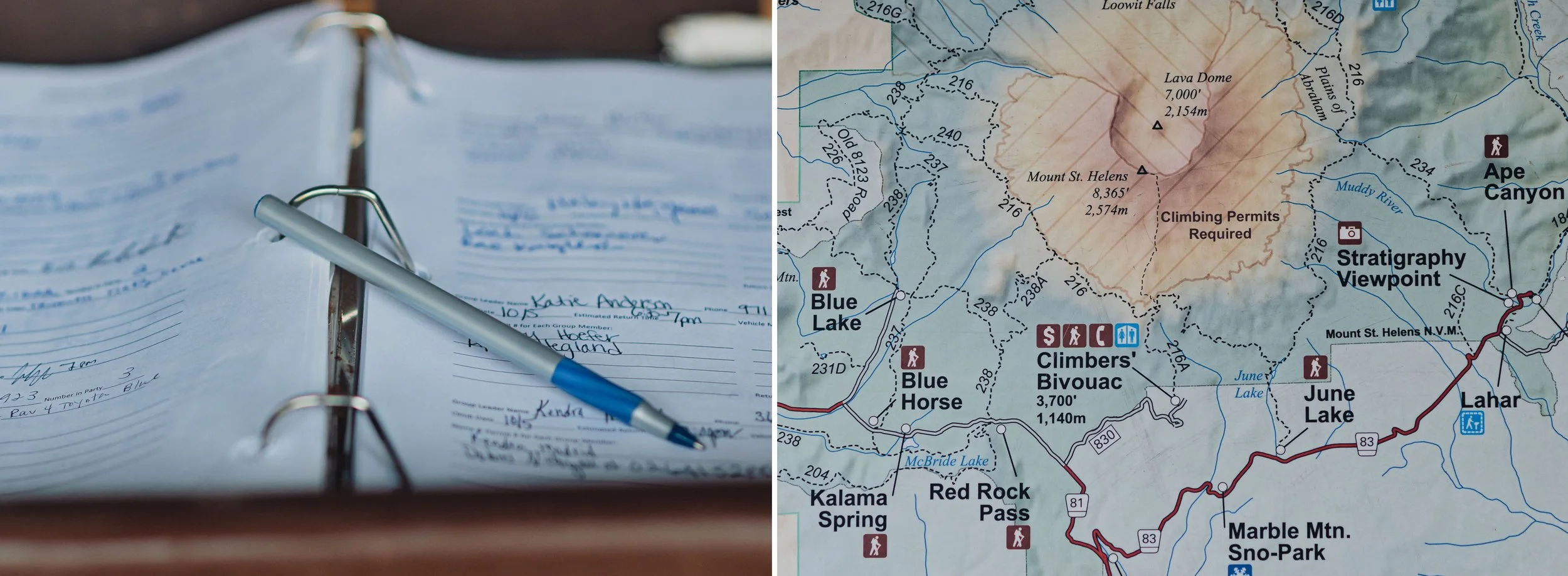 Each climbing party signs in and out in a notebook at Climbers’ Bivouac trailhead.